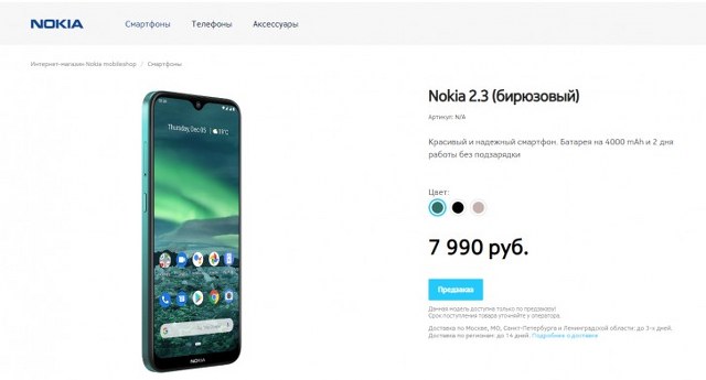 El Nokia 2.3 que se anunció hace un par de días ya está disponible para pedidos anticipados, comenzando en Rusia. Listado en el sitio web local de Nokia, el teléfono tiene su precio establecido en RUB 7,990, o el equivalente a 125 dólares.