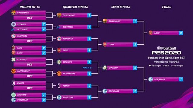 Tras la celebración del conjunto de partidos retransmitidos este domingo, Konami Digital Entertainment B.V. ha compartido hoy los resultados del Torneo #StayHomeWithPES, tras la victoria de Nassim Boujellab del FC Schalke.