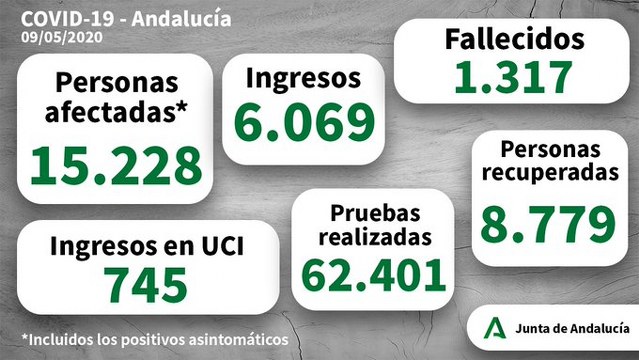La Junta de Andalucía ha facilitado los datos del 8 al 9 de Mayo con 178 nuevos contagios contabilizados en las últimas 24 horas del viernes al sábado. A ello se le suma 16 fallecidos, una cifra bastante negativa y que tocará bajar después de que la fase 1 haya sido activada en 6 de las 8 provincias de la comunidad autónoma.