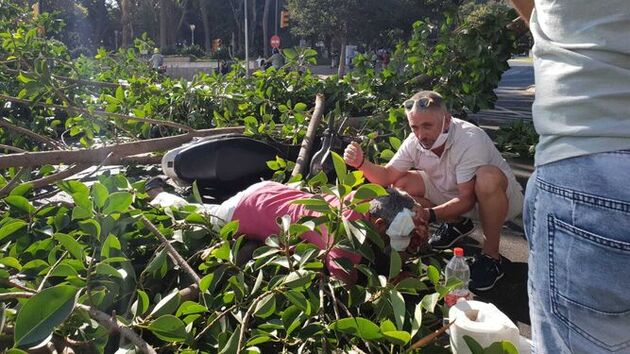 Los servicios sanitarios han atendido a un motorista de 52 años herido al caerle un árbol en la avenida Cánovas del Castillo en Málaga capital, según informa el servicio Emergencias 112 Andalucía adscrito a la Consejería de la Presidencia, Administración Pública e Interior de la Junta.