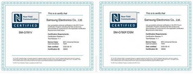 Las unidades tienen códigos de modelo SM-G781V y SM-G780F / DSM, y aunque NFC Forum no revela ninguna de sus especificaciones, un dispositivo con el número de modelo SM-G781B fue visto en Geekbench el mes pasado con Snapdragon 865 y 6GB RAM, mientras que el SM-G780F tenía un chipset Exynos 990 emparejado con 8GB de RAM.