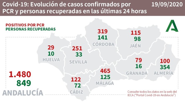 En Málaga son 465 los nuevos positivos por coronavirus, el número crece del viernes 18 al sábado 19 de Septiembre y lo malo de esto pasa por ir a más. Se registra un fallecido en las últimas 24 horas, 18 nuevos ingresos hospitalarios, 3 ingresaron en la UCI y las recuperaciones son 125, un número que hace pensar que es posible una recuperación más lenta de lo normal.