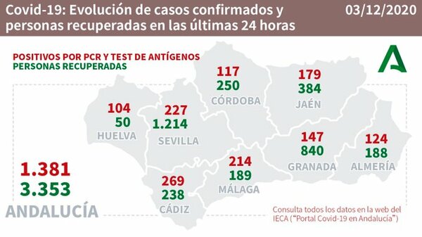 Hoy en Málaga son 214 los nuevos positivos confirmados por coronavirus, un dato que es alentador después de que se haya bajado la cifra en semanas anteriores. Toca lamentar 8 fallecidos en la jornada del miércoles 2 al jueves 3 de Diciembre, pero baja la cifra comparado con los datos auditados del miércoles por la Junta de Andalucía.