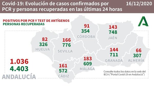 Por provincias: en Almería (101 hospitalizaciones, de las que 31 en UCI), Cádiz (234 hospitalizaciones, de las que 41 en UCI), Córdoba (116 hospitalizaciones, de las que 23 en UCI), Granada (228 hospitalizaciones, de las que 60 en UCI), Huelva (83 hospitalizaciones, de las que 13 en UCI), Jaén (164 hospitalizaciones, de las que 29 en UCI), Málaga (192 hospitalizaciones, de las que 30 en UCI) y Sevilla (172 hospitalizaciones, de las que 44 en UCI).