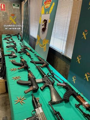En los registros practicados, los agentes han intervenido un arsenal de 160 armas de fuego compuesto por 121 armas cortas, 22 fusiles de asalto y ocho subfusiles, entre otras. También han encontrado 9.967 cartuchos de diferentes calibres, ocho silenciadores, 273 cargadores y hasta una granada con un kilo y medio de explosivo militar, han precisado desde la Guardia Civil en un comunicado.