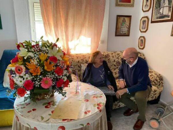 María Fernández Ruiz, la vecina más longeva de Cártama, cumplió el pasado día 8 de febrero 108 años. El alcalde de Cártama, Jorge Gallardo, y la concejala de Bienestar Social, Isabel Sánchez, han visitado a María para hacerle llegar la felicitación de toda la población del municipio y le han hecho entrega de distintos obsequios.