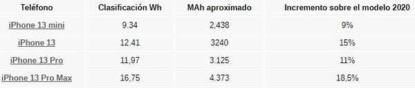 Apple presentó la serie iPhone 13 la semana pasada y, como de costumbre, aunque aumentó la duración de la batería, omitió cualquier detalle sobre sus capacidades. Apareció un archivo durante el fin de semana, que revela la capacidad de las baterías y muestra cuánto han aumentado.