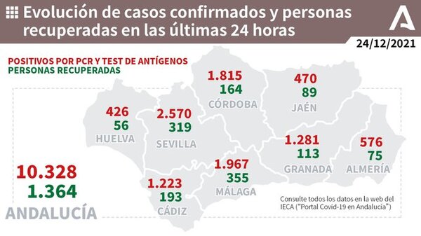 Por provincias: en Almería (42 hospitalizaciones, de las que 11 en UCI), Cádiz (96 hospitalizaciones, de las que 7 en UCI), Córdoba (93 hospitalizaciones, de las que 23 en UCI), Granada (69 hospitalizaciones, de las que 10 en UCI), Huelva (47 hospitalizaciones, de las que 8 en UCI), Jaén (49 hospitalizaciones, de las que 14 en UCI), Málaga (191 hospitalizaciones, de las que 36 en UCI) y Sevilla (184 hospitalizaciones, de las que 28 en UCI).
