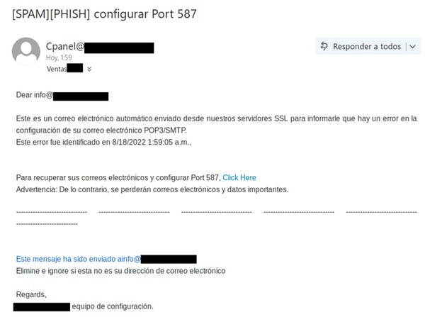 Ante un correo de este estilo, y dado que pocos usuarios en las empresas españolas se configuran ellos mismos los puertos usados para el envío y recepción del email, lo normal sería acudir al responsable de sistemas o informática de la empresa para que revise si la información proporcionada por correos de este tipo es correcta.