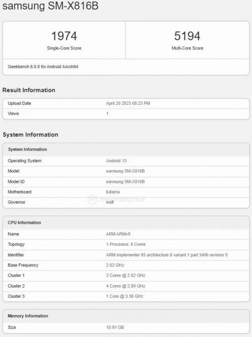 El Tab S9+ se ubicará entre el Galaxy Tab S9 y el modelo S9 Ultra, pero aún empleará un conjunto de chips Snapdragon 8 Gen 2, que se ve nuevamente en el cuadro de mando.