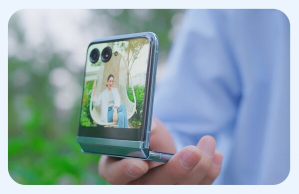 Motorola redujo los componentes de la bisagra a 85 partes, lo que debería ayudar con la longevidad y la resistencia. El teléfono se puede apoyar sobre su parte posterior en múltiples ángulos para la captura de contenido.