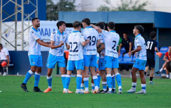 Málaga CF: Alfonso Herrero, Jokin Gabilondo, Víctor García, Juande, Einar Galilea, Juanpe, Luca Sangalli, Genaro, Kevin Medina, David Larrubia y Dioni.