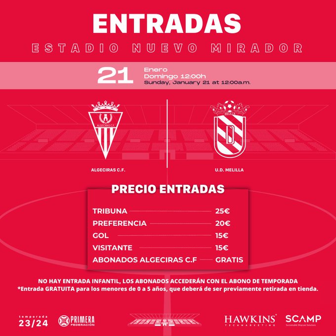 Para poder » Ver en directo el Algeciras – UD Melilla » dispones de la señal de FEF TV a las 12:00 horas y alguna que otra aplicación, para ello tienes el canal de Telegram donde se podrá seguir este en vivo y online. El equipo de casa es el favorito, mientras el visitante pretende asaltar un campo que es un fortín en los últimos años.