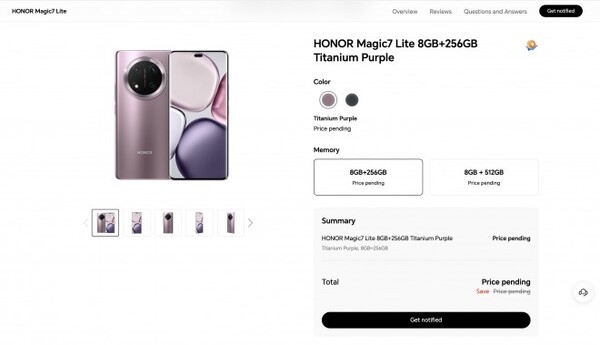 Hoy temprano, vimos una filtración importante para el próximo Honor Magic7 Lite, completa con especificaciones y precios. Honor Italia siguió adelante y incluyó su Magic7 Lite en su sitio web oficial en colores Titanium Purple y Black.